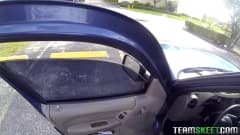Esta cena começa com um bom boquete no carro e, em seguida, eles vão em casa para uma boa trepada na cama enquanto ele filma toda a ação.