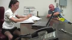 Vanessa Jett é uma secretária gostosa que sabe como satisfazer o pervertido que está com ela, ele adora quando ela paga uma punheta de pés até ele gozar.