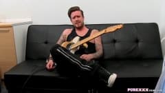 Esta morena gosta de músicos, especialmente quando gozam em sua cara como este macho de sorte que ganha um boquete bem caprichado!
