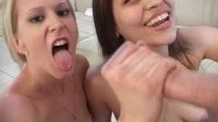 Essas três amigas se reúnem para se divertir pagando punheta pra esse cara que não acredita na sorte que está tendo hoje!