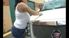 Charlie trabalha lavando carros, e quando a sua roupa fica molhada seu corpo transparece sensual e este homem que gosta de mulher grande vai delirar!