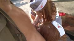 Denisa Cielo, Roxxxy Rush e Kristine Crystalis estão dispostas a satisfazer um cara que está se metendo na rua com suas palhaçadas...