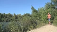 Esse cara francês está indo para o lago e nadar nu mas, quando sai, alguns amigos vão estar à espera porque querem foder seu cu ao ar livre.