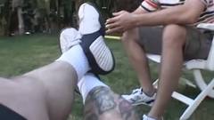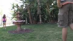 Ela começa a sessão com um boquete antes de entrar em casa e trepar com seu namorado no sofá...