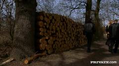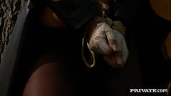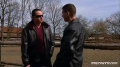 Esta loira sexy é amarrada e fodida por dois homens que fodem duro na bunda dela e também se deleitam com seus pés sensuais...