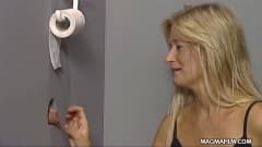 Esta Milf sexy ganhou um monte de dinheiro sugando o pênis de quem entrar neste buraco na estação de metrô. Ela sabe como chupar gostoso...