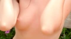 Aqui está uma menina com tesão que quer se masturbar na frente das câmeras no quintal, ao ar livre. Assista como ela toca sua buceta...