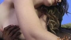 Essa loira fode o negro com tesão enquanto a morena observa, vamos imaginar o prazer que ele deve estar sentindo nesse trio interracial...