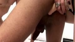 Esta transexual vai tomar a surra da sua vida desse macho que transa com ela e com mais uma loira bonita equipada com strap-on...