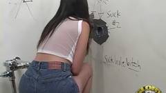 Este morena está olhando para a parede do prazer chupando galo preto desfrutando e mostrando-nos como ela é boa com sua língua!
