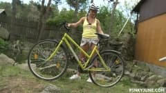 Esta garota safada quer tocar em sua vagina com os dedos, depois de ter passado o dia andando de bicicleta nua no jardim. Confira!