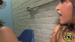 Nesta cena, vemos Aleska colocar a boca num enorme galo através de um buraco na parede para que ela faz o que ela sabe fazer melhor, chupar!