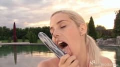 Nesty se relaxa ao pé de um lago onde reina a tranquilidade e a paz, e é onde ela prefere se masturbar para se sentir zen de tanto prazer...