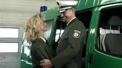 Ela trabalha na policia e vai ter a sorte de ter sexo com um colega durante as horas de serviço.