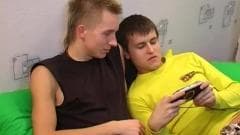 Estes dois garotos querem brincar com o playstation mas, quando suas mãos se tocam vão notar que estão animados e decidem começar a foder...