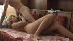 Uma gata loira curtindo um pau duro
