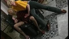 Este gay loiro acaricia com luxúria o corpo de seu amigo vestido de mulher, para o excitar muito e desfrutar de uma boa sessão de sexo com ele.
