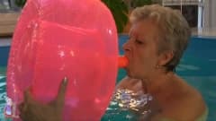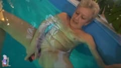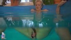 Essa velha vovó quer lembrar dos seus belos dias de juventude e entra na piscina nua porque quer sentir a buceta borbulhar de tesão debaixo d'água...