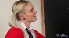 O professor levou essa loira safada para a sala de punição por ela ser tão atrevida, agora ela vai pagar um boquete de sonho para se redimir...
