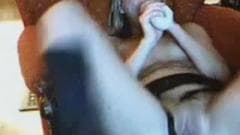 Ela fica no sofá se masturbando com um vibrador enorme e grava esse momento de prazer a sós com sua câmera, assim já pode se excitar mais tarde...