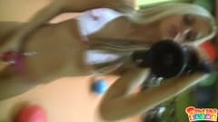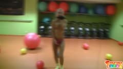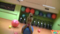 Ela gravou um show com sua câmera na frente de um espelho enquanto se masturbava quase nua, com a ajuda de um strap-on no ginásio. Não perca!