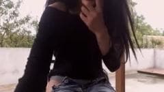 Esta morena começou a coçar na buceta enquanto estava patinando, e depois se senta e abre as pernas para se masturbar como uma cadela.