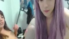 ![Duas garotas se apalpando para seus telespectadores Duas garotas se apalpando para seus telespectadores]()