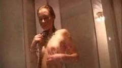 Esta gata sedutora entra no banheiro e começa a molhar seu corpo nu se excitando sem querer e acabando tocando uma siririca gostosa...