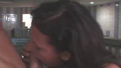 Uma morena tesuda desfruta de um pau na boca