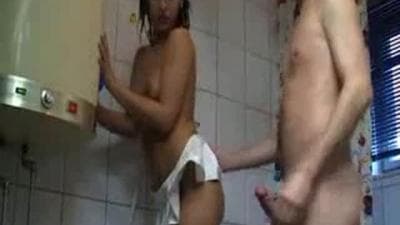 Acordaram com vontade de sexo e então vai ser uma rapidinha na casa de banho. Um puro momento de felicidade a não perder.