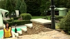A bela morena está toda nua no pátio e, quando o sol começa a aquecer a sua pele, ela aquece também e sente uma grande vontade de se masturbar...