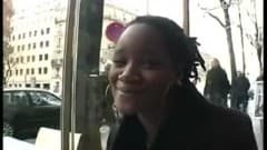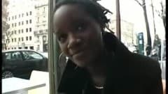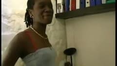 É a primeira vez que esta linda preta vai ser filmada para um porno.Ela fode esse cara branco no sofá em casa.