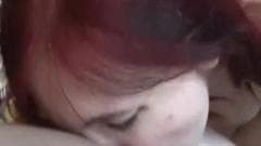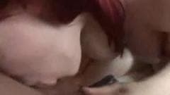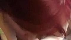 Uma ruiva mamando uma rola dura