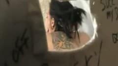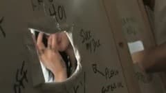 Ela vai até a casa de banho e vai ter a oportunidade de fazer coisas nojentas. Um glory Hole está no programa deste vídeo.