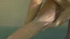 Esta gata amadora se banha e derrama muito sabão na vagina porque quer suas bordas bem limpas e cheirosas para seu macho lamber com vontade!