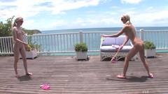 Você não pode imaginar como é bom ver essas duas meninas loiras brincando no quintal com um enorme vibrador e ficando todas molhadas!