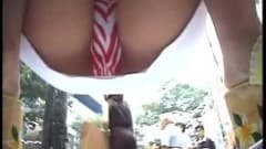 Ele gosta de ver as cuecas das passantes. Uma câmera bem colocada, captura as bucetas inchadas por baixo das saias meninas asiáticas