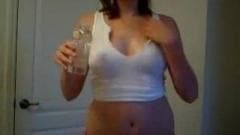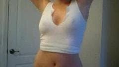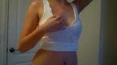 Ella está de vacaciones escolares y por eso está sin nada que hacer en asa así que decide que es un buen momento para hacer un striptease y tocarse.