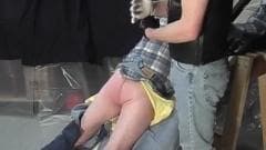 ![O barbeiro enfia o braço no traseiro de seu cliente favorito O barbeiro enfia o braço no traseiro de seu cliente favorito]()