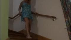 Linda gravida loira masturba-se nas escadas