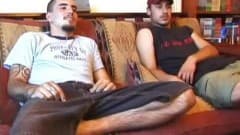 ![O dominador entra e começa a punhetar esses dois gays magros O dominador entra e começa a punhetar esses dois gays magros]()