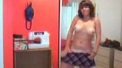 Esta morena suja é uma estudante realmente suja e quer se divertir muito conosco na frente da webcam. Ela tira suas roupas.