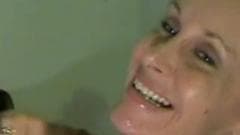 Mesmo sem ver os gajos, muito generosamente ela chupa-lhes o caralho neste gloryhole a não perder !