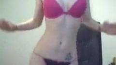 Esta mulher sensual e morena gosta de exibir-se e vai então tirar o soutien.