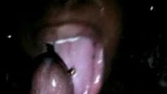 Esta mulher está muito excitada e quer chupar o pau de seu namorado. Ela coloca muito esperma em sua boca e o engole.