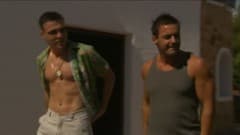 Ela chega a piscina e tem a sorte de encontrar dois rapazes conhecidos. Eles vão tratar muito bem dela.