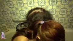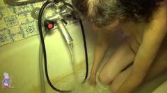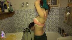 Veronika está tomando um banho em casa e ela pede sua assistente para agradá-la e ela concordou. Assim que começam no banho Veronika é dedilhada!