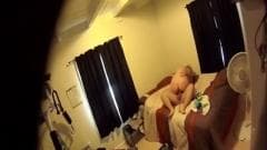Este casal amador vai calmamente transar juntos em casa e a cadela loira não sabia que seu marido tinha escondido uma pequena câmera!