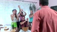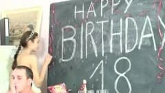 Uma jovem tem um presente de aniversário muito especial para seu 18º aniversário. Ela é fodida com força por dois caras ao mesmo tempo.