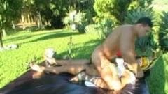 ![Raphaella Ferrari transa com um homem perto da piscina Raphaella Ferrari transa com um homem perto da piscina]()